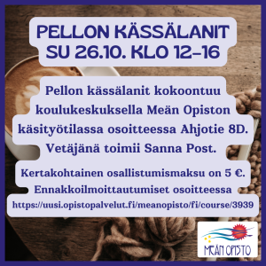 Kurssi pidetään 12.1.–2.2.2026 klo 16–18 Pellon kirjaston ryhmätilassa. Opettajana Marika Rundgren.